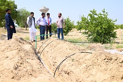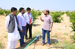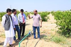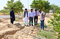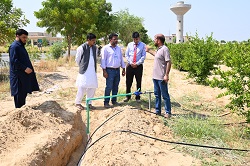 Integrated Drip Irrigation System is Installed at Citrus Orchard of Cholistan University of Veterinary and Animal Sciences, Bahawalpur Bahawalpur Integrated Drip Irrigation System was installed at Citrus Orchard of the Cholistan University of Veterinary and Animal Sciences, Bahawalpur. Engr Zafar Islam, Senior Scientific Officer and Engr Shahid Hameed Khalil, Scientific Officer from Climate, Energy and Water Research Institute (CWERI), PARC, Islamabad visited CUVAS and installed the Integrated Drip Irrigation System in the orchard of CUVAS, Bahawalpur. Objective of this highly efficiency irrigation technology is to improve water use efficiency along with utilization of space between fruit plants for the cultivation of fodder and grasses. This facility was provided under the PARC funded project entitled “Evaluation and Promotion of Innovative Irrigation Technologies for High Value Vegetable and Horticulture Crops in Water Scare Areas (NR 343)” which is being implemented by Dr. Bashir Ahmad, Principal Scientific Officer, CEWRI, PARC, Islamabad. The Vice Chancellor appreciated the efforts of national experts from CEWRI for their kind support and need of such High efficiency Irrigation Systems to address water scarcity in the Cholistan region. This facility will provide an opportunity for students, farmers and other stakeholders regarding capacity building and awareness about efficient irrigation systems to boost crop production under water scarce areas like Cholistan. Focal person of this collaboration, Prof. Dr. Faiz-ul Hassan, Dean, Faculty of Animal Production and Technology, thanked the national experts for their visit and for gracious collaboration that created opportunities of learning, capacity building and practical knowledge for the students, farmers and other stakeholders. This facility will serve as platform for the training and technology transfer model for the demonstration of climate smart irrigation technology which can boost fodder and crop cultivation in the Cholistan region. The Vice Chancellor and Dean, Faculty of Animal Production & Technology, CUVAS appreciated the Worthy Chairman PARC, Dr. Ghulam Muhammad Ali for initiating such an important project on Climate Smart Irrigation Technologies for Cholistan to revolutionize the agriculture sector. |